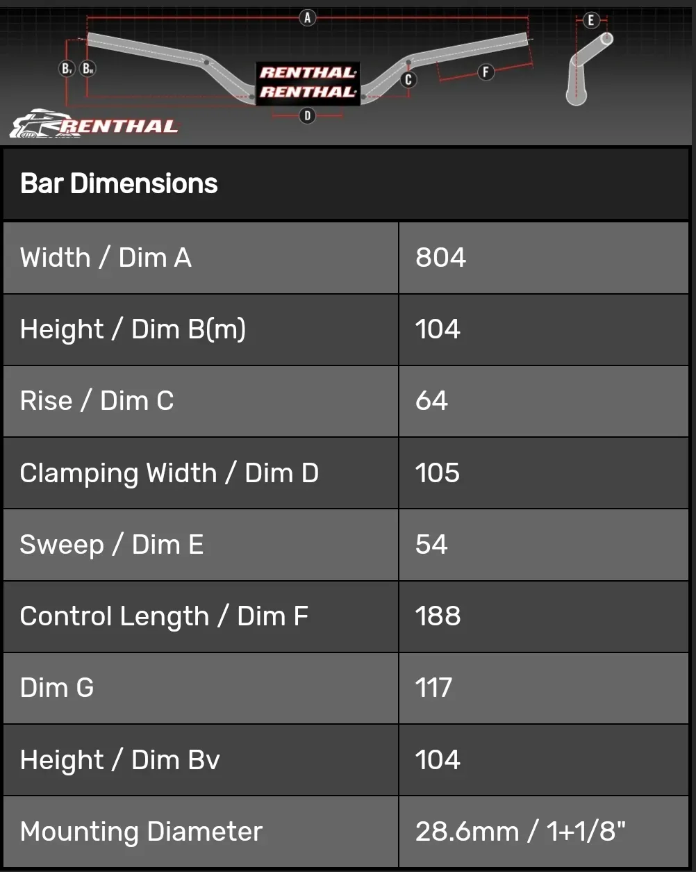 Encajando casi perfectamente en el medio de la gama de curvas Renthal, la curva RC Bar es una de las más populares entre todas las curvas.